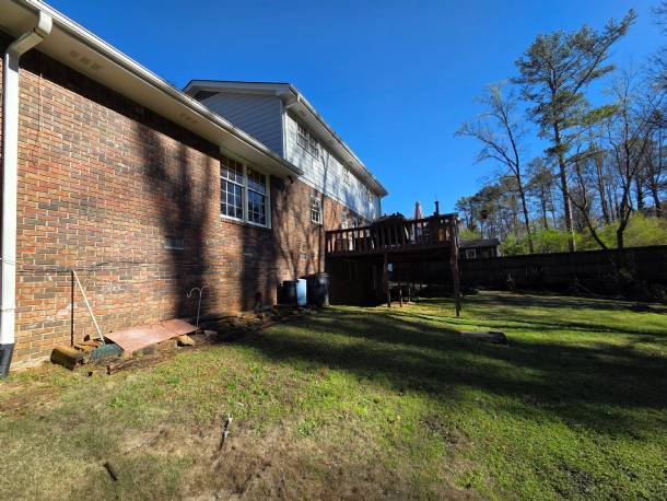 Main Level: Open Foyer, Formal Living Room, Formal Dining Room, Eat in Kitchen with Island, Half Bathroom, Back Family Room with Brick Fireplace and nice Built-Ins with Walk Out to Elevated Back Deck, Laundry Room and also inside Access to Garage Upper Level: Primary Bedroom with a Full En-Suite Bathroom, 3 Additional Bedrooms and a Full Hall Bathroom Lower Level: Open Finished Bonus Room with Back Walk Out Exit - Take Note the Owner had a Water Issue some Years Ago and had a French Drain Installed and had Walls and Ceilings refinished and have had No Water Issue since and has been Dry